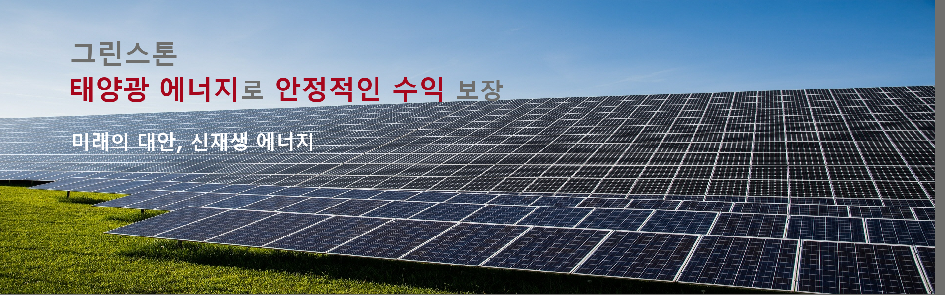 발전소분양그린스톤은 전국 각지에 다양한 규모와 가격대로 태양광발전소를 개발해 분양합니다 협력업체그린스톤은 국내외 우수한 업체들과 협력하여 태양광 관련 자재를 수급합니다 고객센터태양광 발전에 대해 궁금한 점이 있으시면 언제든 망설이지 마시고 연락주세요